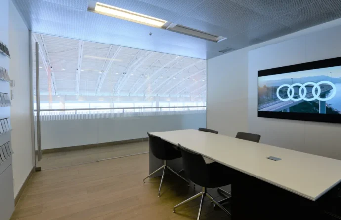 The 322 model retains the refined aesthetic of the 320 series, but in a double-glazed version. This configuration significantly enhances acoustic performance while maintaining the transparency and slim profile design. It allows users to enjoy a bright, modern environment with improved sound privacy.